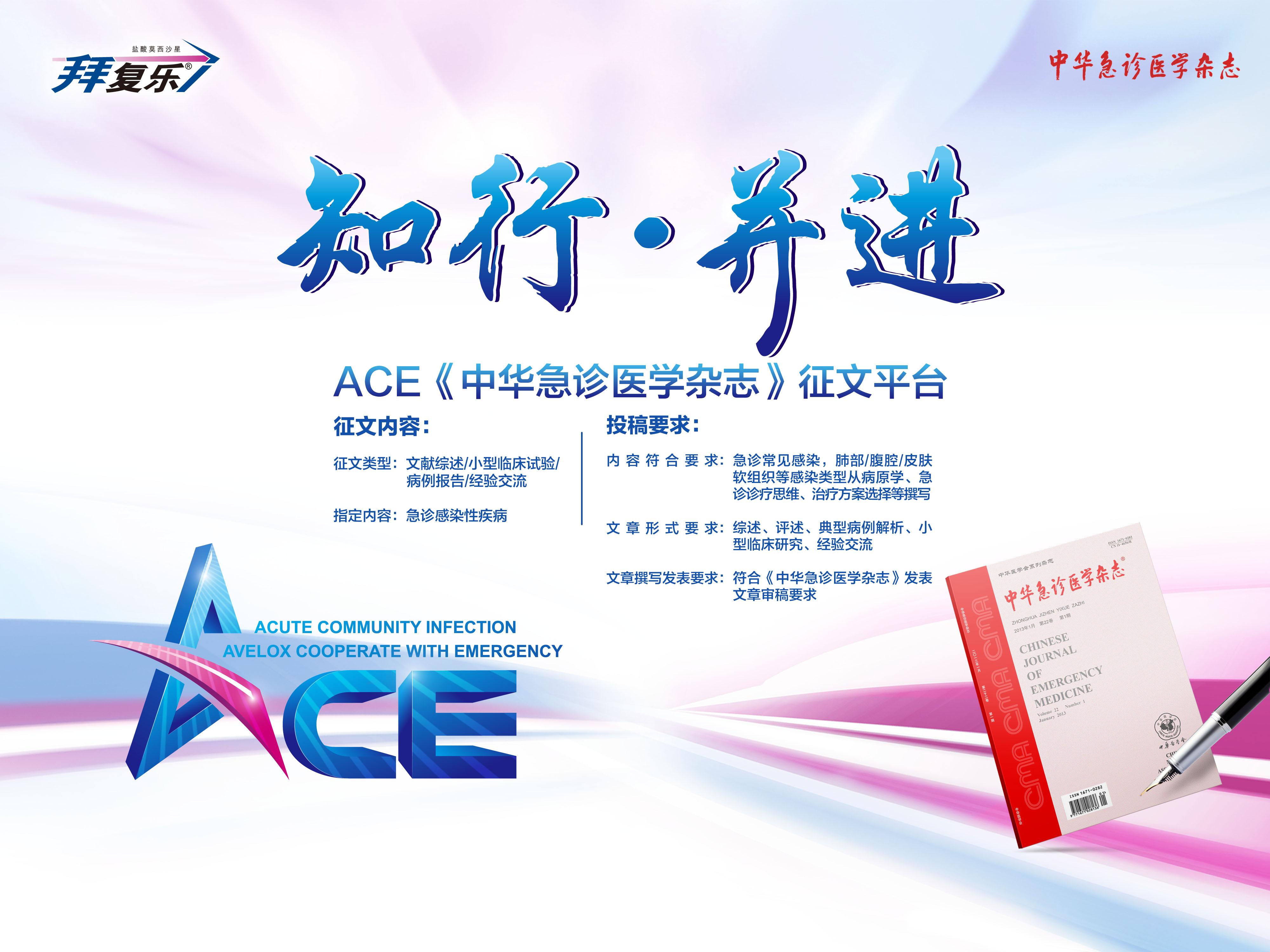 为进一步强化社区急诊科专家间的学术交流,推动建立急诊领域中青年医生学术发展平台,由《中华急诊医学杂志》组织,拜耳医药保健有限公司承办,拜复乐急诊ACE (Acute Community Infection/ avelox cooperate with emergency)交流沙龙项目已开始启动,以专业学术、领先理念、规范标准,引领急诊领域在社区获得性感染诊疗的交流与发展。