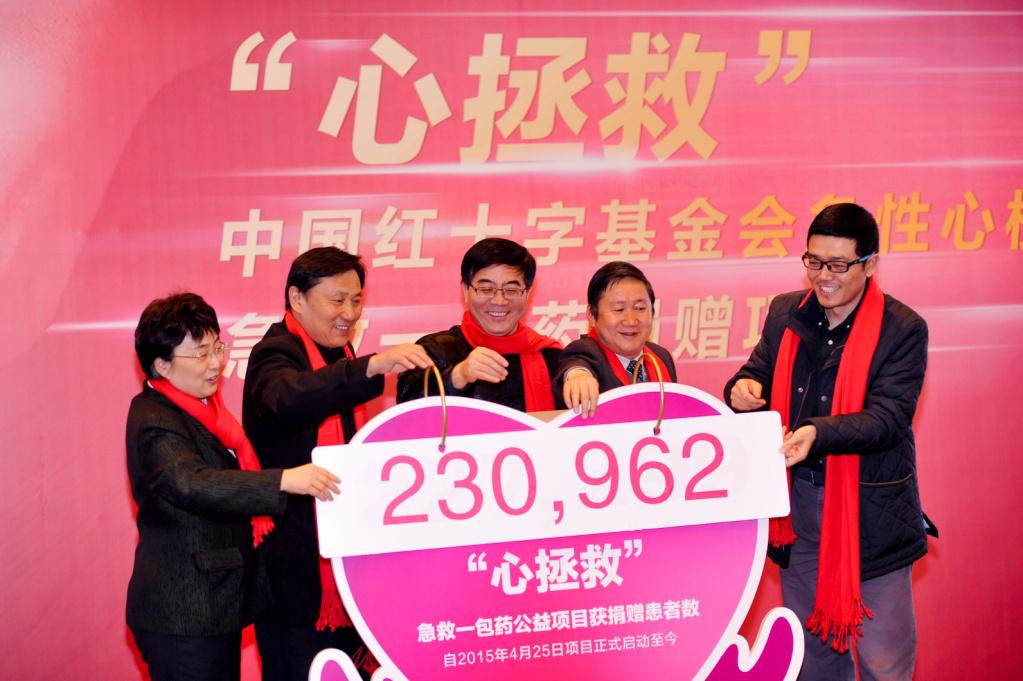2016年2月19日,众多参与急救“一包药”项目的心血管专家及医学同仁齐聚苏州,在中华医学会心血管病学分会主任委员葛均波院士、前任主任委员霍勇教授、候任主任委员韩雅玲院士、中国红十字基金会副理事长刘选国先生以及阿斯利康中国高级副总裁施旺先生的共同揭晓下,一起见证心梗急救一包药公益捐赠项目获益患者数达到230,962例。