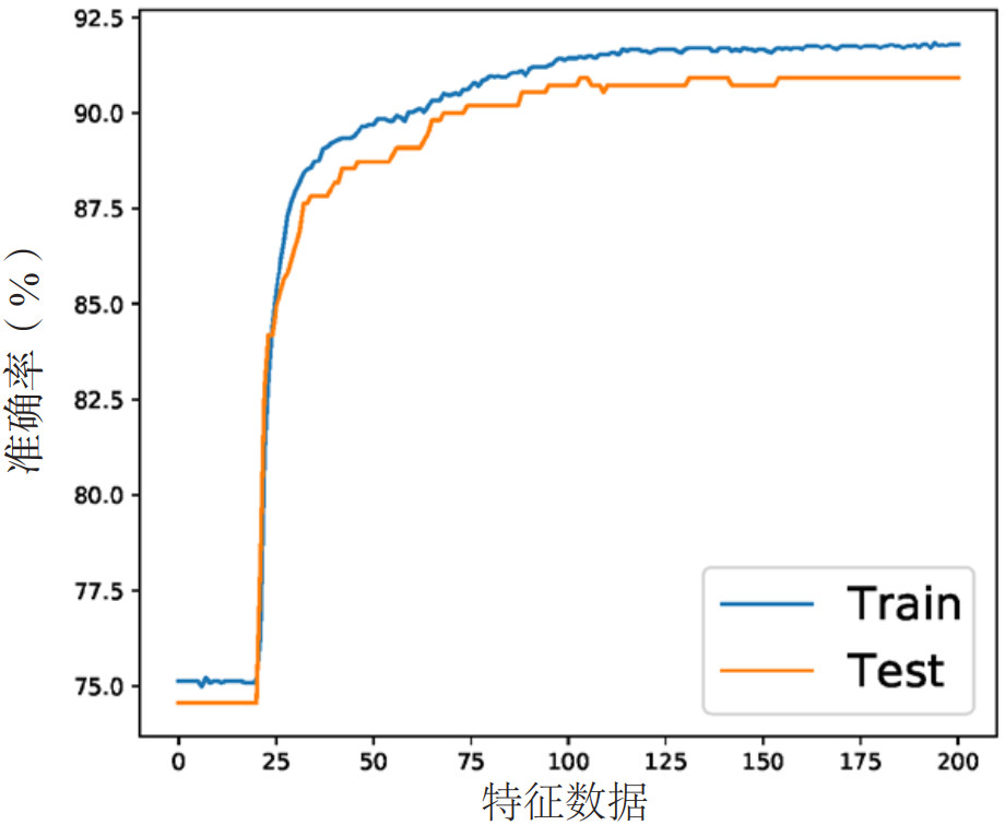 | 图 3 将决策树所选特征数据用于训练的预测准确率 Fig 3 Prediction accuracy rate for training with feature data selected by decision tree |