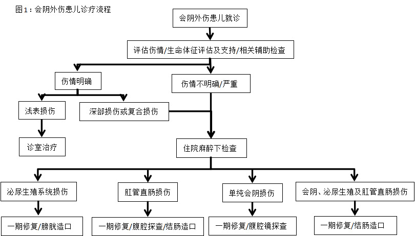 | 图 1 会阴外伤患儿诊疗流程 |