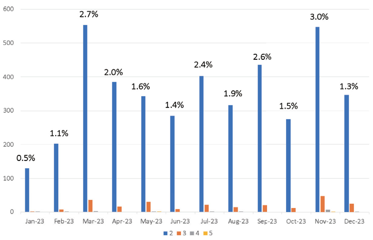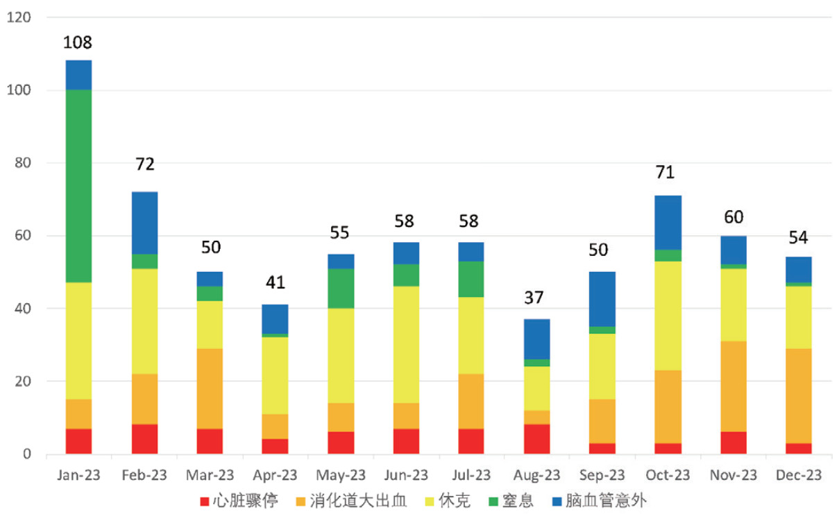 | 图 4 2023年1月至2023年12月成人急诊分诊涉及ESS数量分布 |