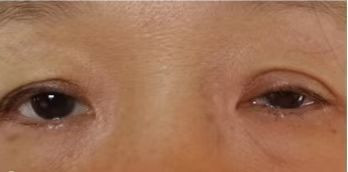 | 图 4 患者左眼裂缩小,左侧瞳孔较右侧变小 |