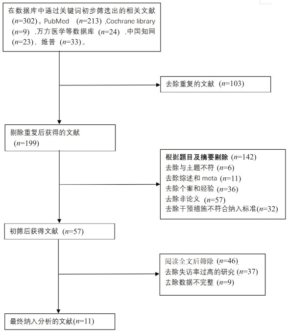 (1) 无法获得原文或重复发表的文献;(2)机制研究及动物实验的文章;(3)结局指标不完整的文献;(4)综述、评论、会议摘要和案例报告等。