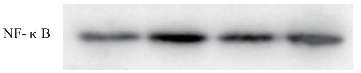 | 图 3 各组大鼠肠组织NF-κB蛋白条带 Fig 3 NF-κB protein bands in intestinal tissues of rats in each group of rats |