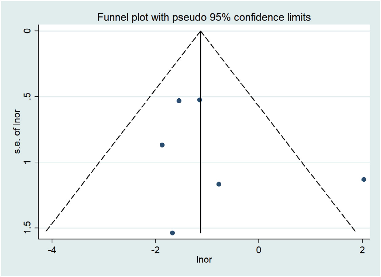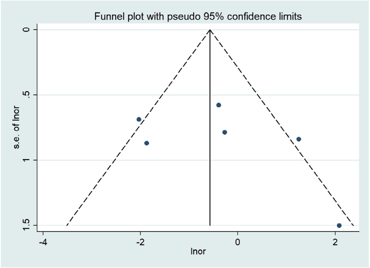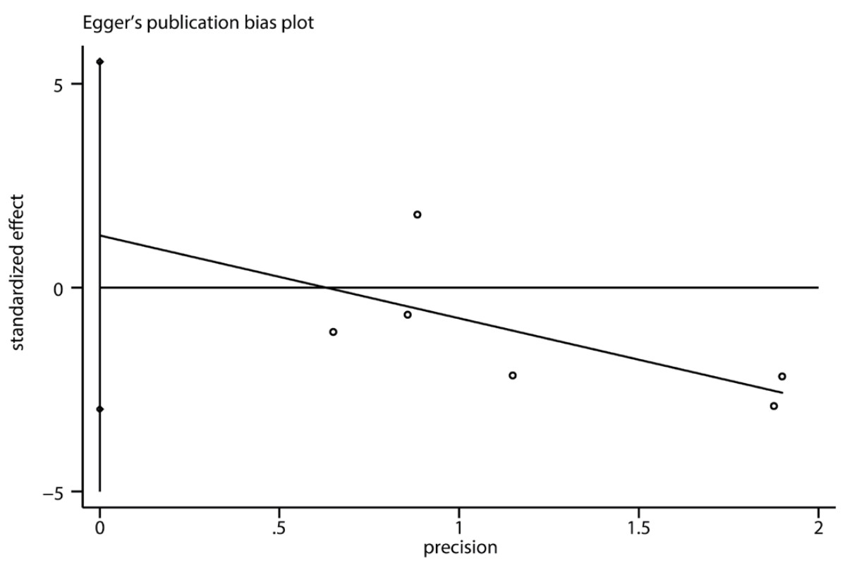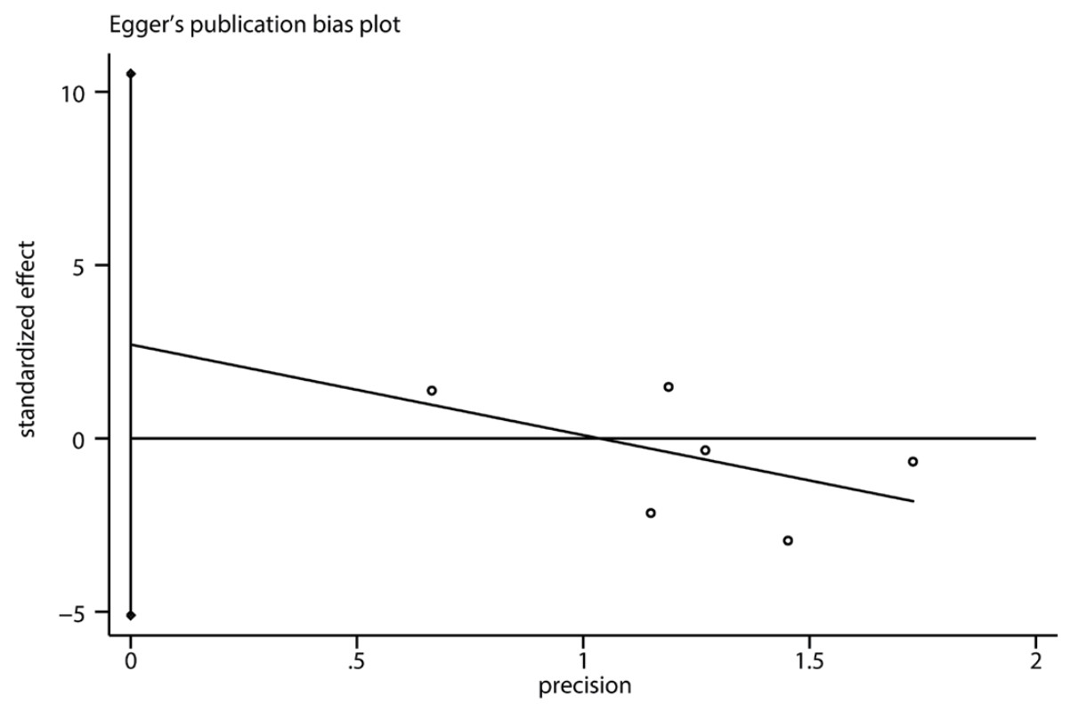 Meta分析结果显示,漏斗图对称性较好,说明不存在潜在的偏移(图 10-11)。Egger分析结果见图 13-15,显示,关于各种干预措施和常规处理之间的比较P=0.45(图 12);眼部润滑剂与其他干预措施之间的比较P=0.39(图 13)。