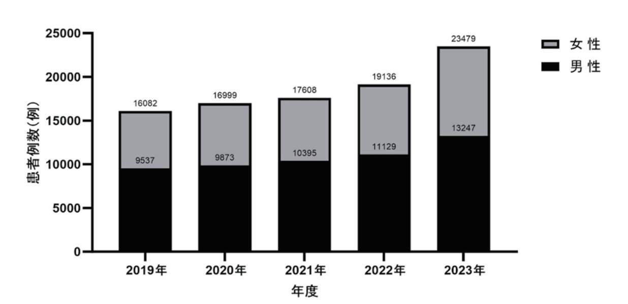 图 1 2019年至2023年益阳市城区院前急救患者年度趋势