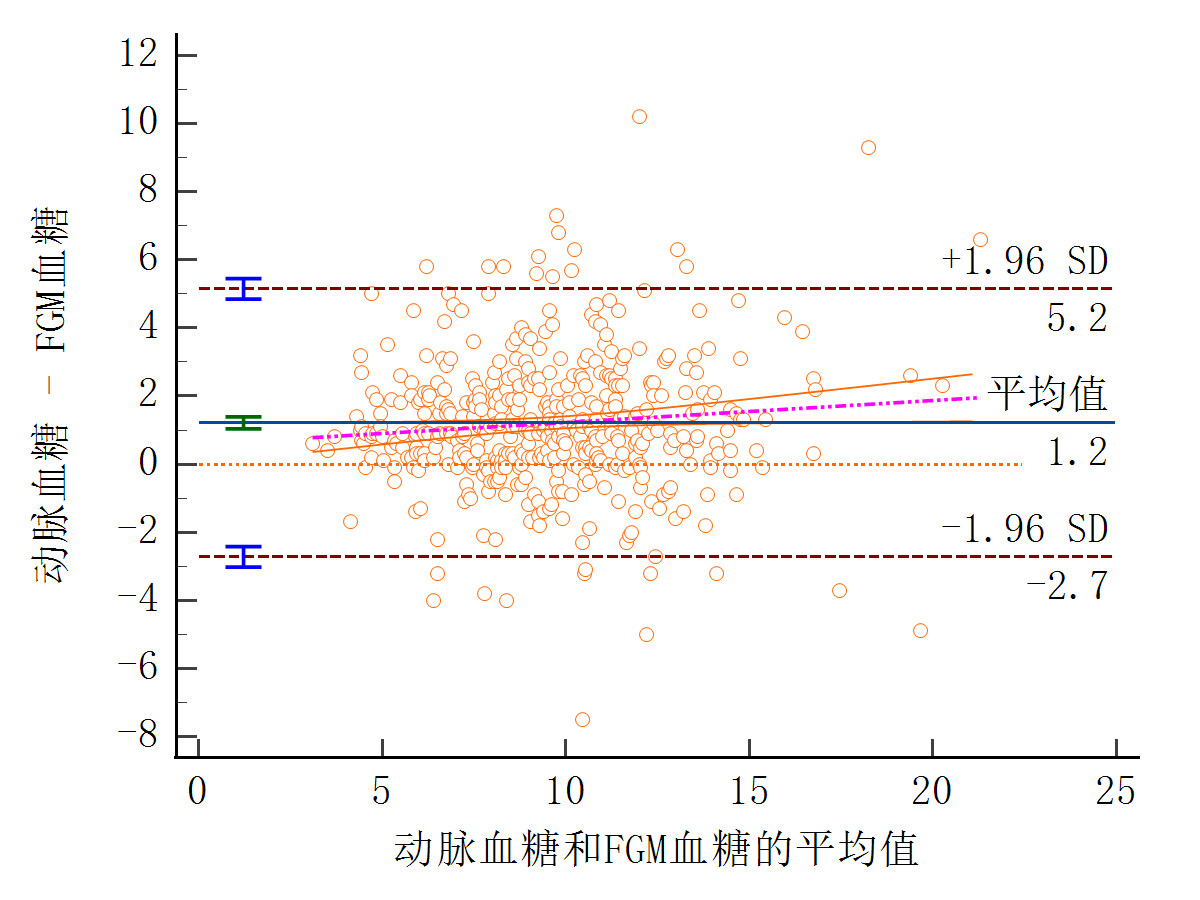2.2 动脉血糖与FGM血糖监测法的Bland-Altman分析