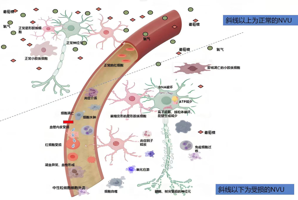 上文中笔者提到CA/ROSC后HIBI时的病理生理过程涉及等多个方面,已知NVU是一个高度协调的系统,在HIBI时各个组成部分均受到不同程度的损坏(图 2)。