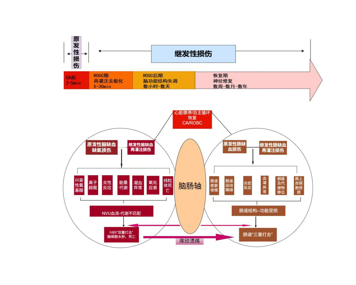 | 图 1 CA/ROSC后HIBI序贯发生、部分重叠四个病理阶段 |
