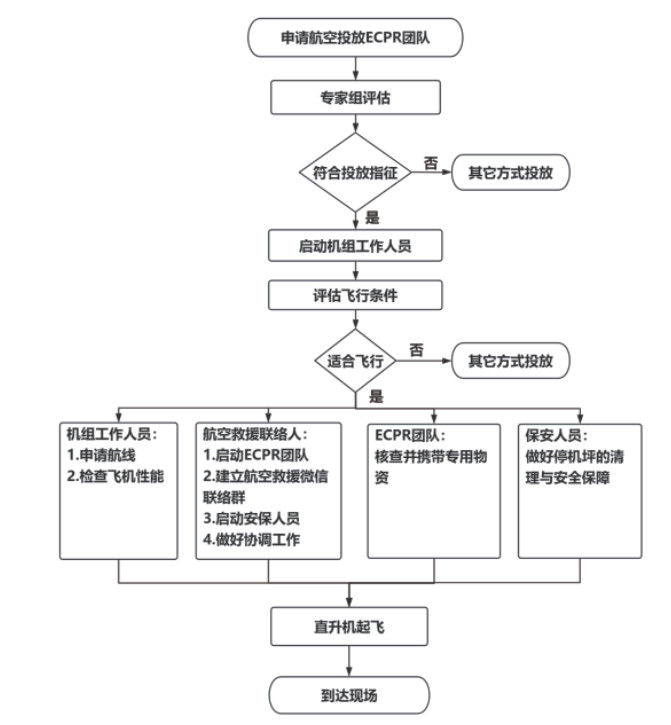 图 1 航空救援专家及仪器投放流程