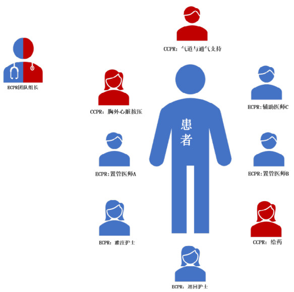 推荐意见16:ECPR团队组长指挥并协调CCPR团队和ECPR置管团队分工合作完成高质量CCPR及ECPR置管。(证据水平高,强推荐)