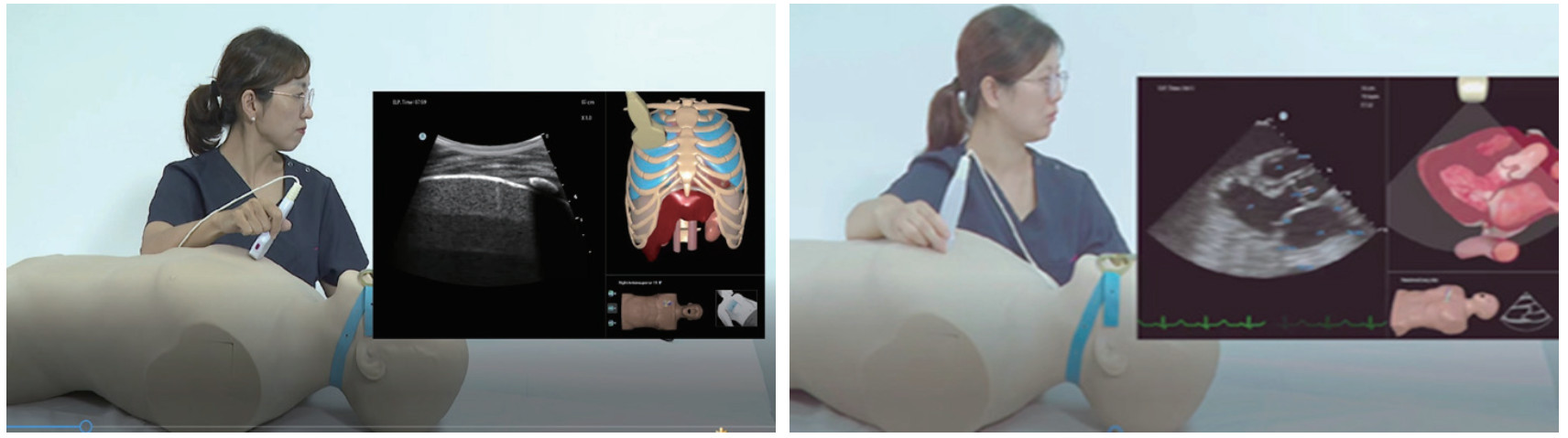 | 图 2 2名固定授课教师利用Simbionix超声交互模拟系统录制的POCUS教学视频 Fig 2 POCUS instructional videos |