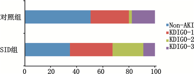 本研究不足之处在于:对照组患者肌酸激酶(CK)数值明显高于SID组,因而肌溶解相关性肾损伤程度也较重。这可能会影响对照组SAKI的发病率及病情。