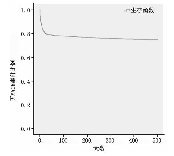 图 1 随访患者发生MACE的Kaplan-Meier生存分析曲线 Fig 1 Kaplan-Meier curves for the occurrence of major adverse cardiac events