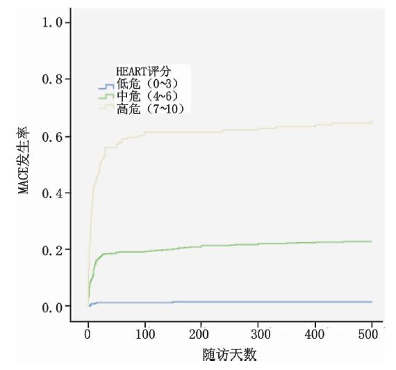 图 2 不同心脏评分患者MACE发生率比较 Fig 2 Comparison of MACE rates between patients with different HEART scores