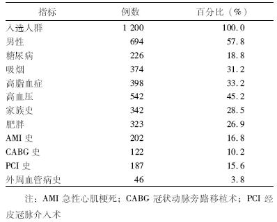应用SPSS 13.0软件进行分析,计量资料采用均数±标准差(x±s) 描述。计数资料以百分比(%) 表示。两组计量资料之间的比较用成组t检验,采用Kaplan-Meier法分析生存率,Log-rank检验生存率差异有无统计学意义。评分方法对不良事件的预测能力分辨度以ROC曲线下面积衡量。以P<0.05为差异具有统计学意义。