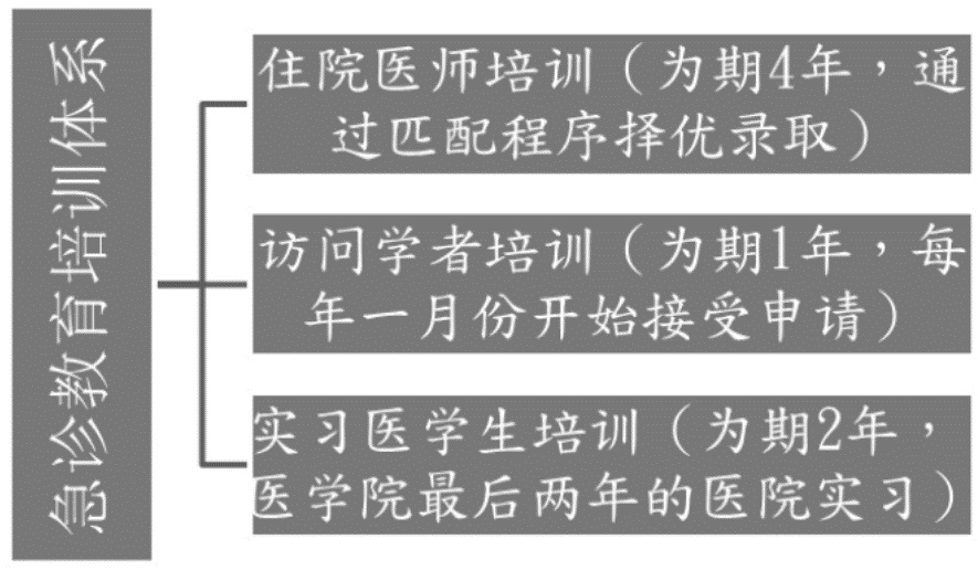 JHH急诊医学部提供广泛的教育培训项目,包括:(1)最具活力和挑战性的住院医师培训项目;(2)带有丰厚奖学金制度的国际访问学者培训计划;(3)备受全球关注和推崇的医学生实习培训计划,如图 1所示。 |