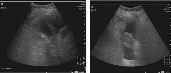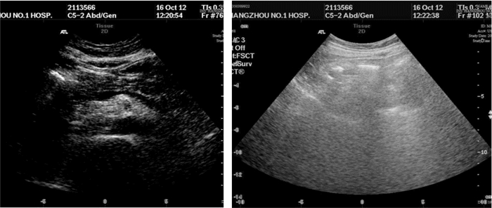 | 图 3 治疗40 d后B超:无胸腹腔积液 |
