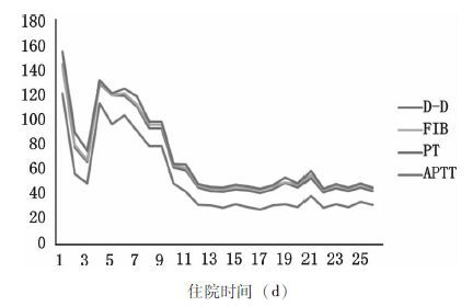 | 图 2 住院期间凝血功能的变化情况 |