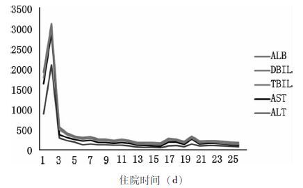 | 图 3 住院期间肝功能指标变化情况 |