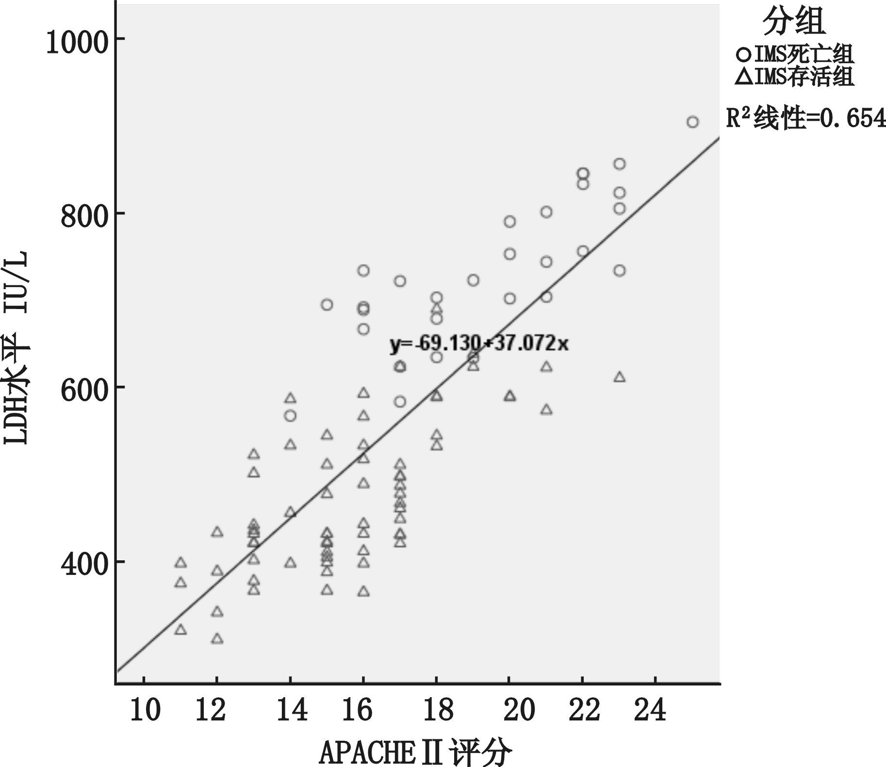 | 图 2 血清LDH与APACHEⅡ评分的相关性分析 |