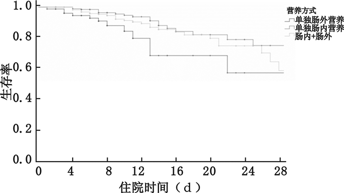 | 图 2 不同营养方式患者住院生存曲线图 |
