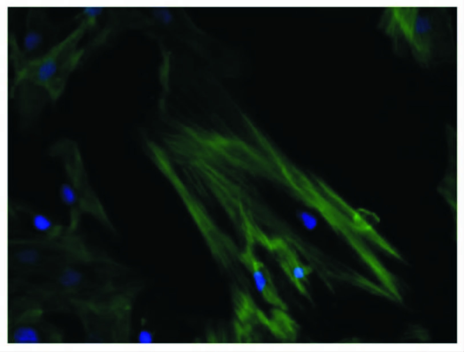 图 1 大鼠主动脉VSMCs细胞免疫荧光鉴定(×400)