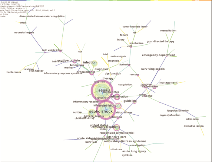图 1 2011至2017年脓毒症研究的发文关键词图谱