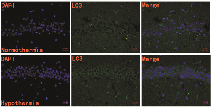 2.4 亚低温对大鼠CA1区神经元细胞LC3颗粒形成的影响