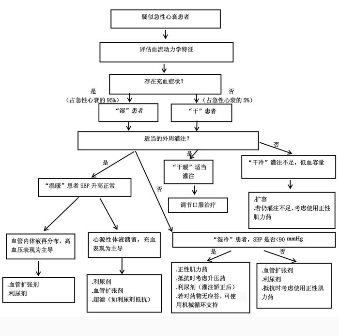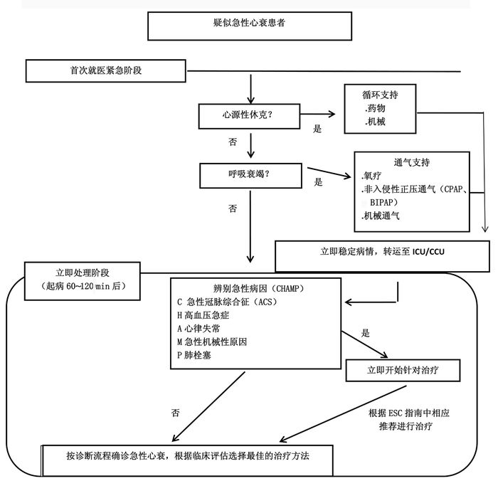 | 图 2 在急性心衰患者早期阶段根据临床情况处理流程 |