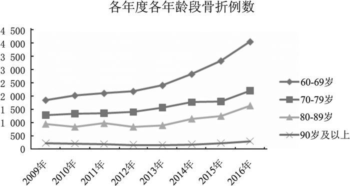 1 资料与方法 1.1 一般资料研究对象以2009年1月至2016年12月到北京积水潭医院急诊科就诊的老年骨折患者作为研究对象进行回顾性分析。