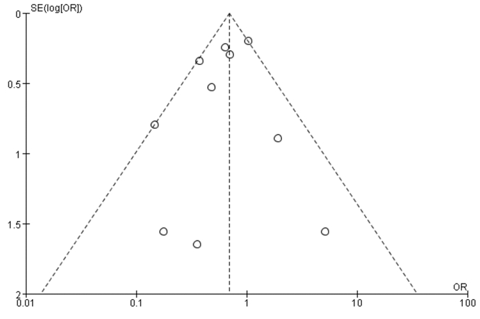 | 图 2 发表偏倚性(漏斗图) Figure 2 Funnel plot for publication bias |