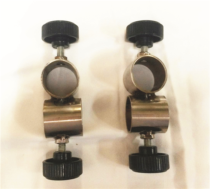 主杆不锈钢管1根,直径3 cm×长100 cm,不锈钢支撑架1根,直径2 cm×长25 cm,滑轮2个,螺旋扭6个,不锈钢管直径4 cm×长3.5 cm,共5个,不锈钢管直径3 cm×长3.5 cm,共1个。