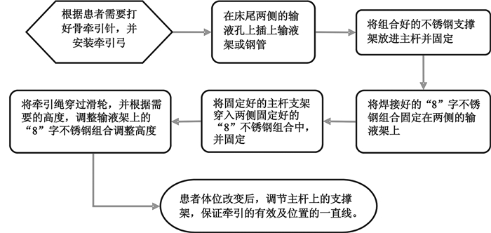 可调节牵引支架进行骨牵引操作流程(见图 4)。