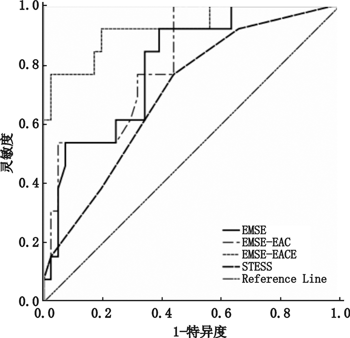 | 注:bP < 0.01代表曲线下面积与0.5比较;cP < 0.01代表EMSE-EACE与STESS,及EMSE-EACE与EMSE之间的比较 | |||||||