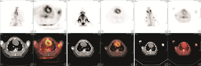| A,基础状态;B,VFCA组ROSC4 h PET心脏检查图像;C,ACA组ROSC4 h PET心脏检查图像。A-C图中左上为PET影像,左下为融合影像,右侧为CT影像。在PET影像中,环状高密度区代表心脏的左心室。 图 3 实验动物行PET心脏检查图像 Figure 3 Cardiac examination images using PET |