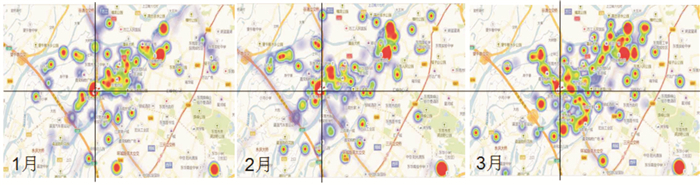 | 图 4 急救热域3个月时间段色谱示意图 Figure 4 Schematic diagram of the first emergency heat domain in March time |