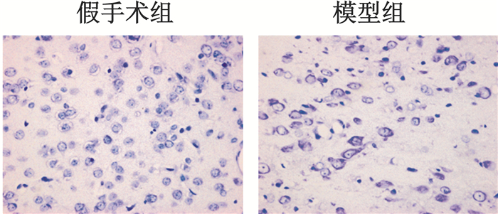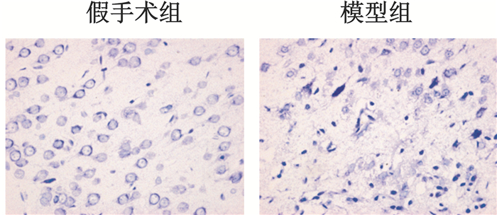 | 图 4 缺血侧纹状体区Nissl染色 Figure 4 The Nissl staining in the ischemic striatum |