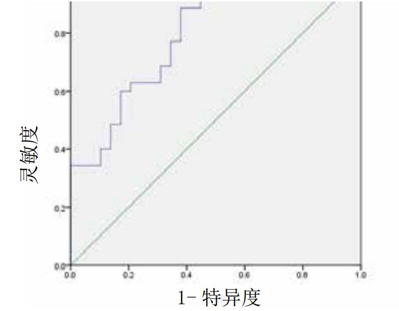 绘制ROC曲线,得到曲线下面积(AUC)为0.813(95%CI 0.708~0.918),测截点值为1 725 pg/U,灵敏度为88.6%,特异度为62.1%,见图 1。