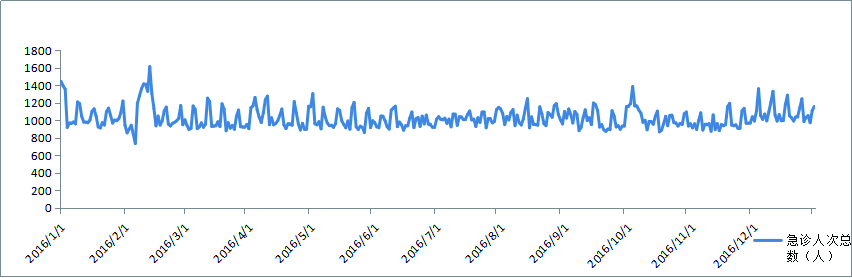 图 1 2016年上海某三甲医院急诊科就诊人次总数分布 Figure 1 The distribution of the emergency department in a Shanghai 3rd Grade Class A hospital in 2016