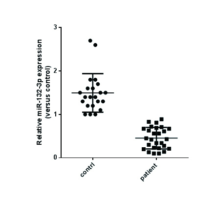 2 结果 2.1 血栓患者血浆中miR-132-3p的含量