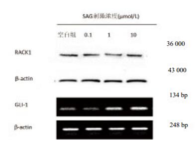 表 3 不同浓度SAG对RPMVEC表达RACK1及GLI-1 mRNA的影响(x±s, n=6) Table 3 Expression of RACK1 and GLI-1mRNA in RPMVEC stimulated by different concentration of SAG(x±s, n=6)
