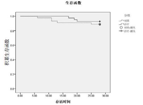 图 1 两组患者28 d生存曲线 Figure 1 Kaplan-Meier survival curves at Day 28