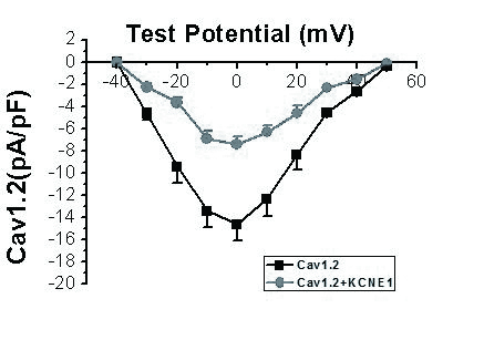Key words: KCNE1     Cav1.2     HEK293 cell     Patch clamp technique