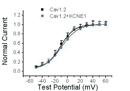 2.2 KCNE1对Cav1.2电流I-V曲线的影响