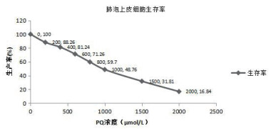 | 图 1 PQ对大鼠肺泡上皮细胞增殖的抑制作用 Fig 1 Inhibitory effect of PQ on proliferation of rat alveolar epithelial cells |