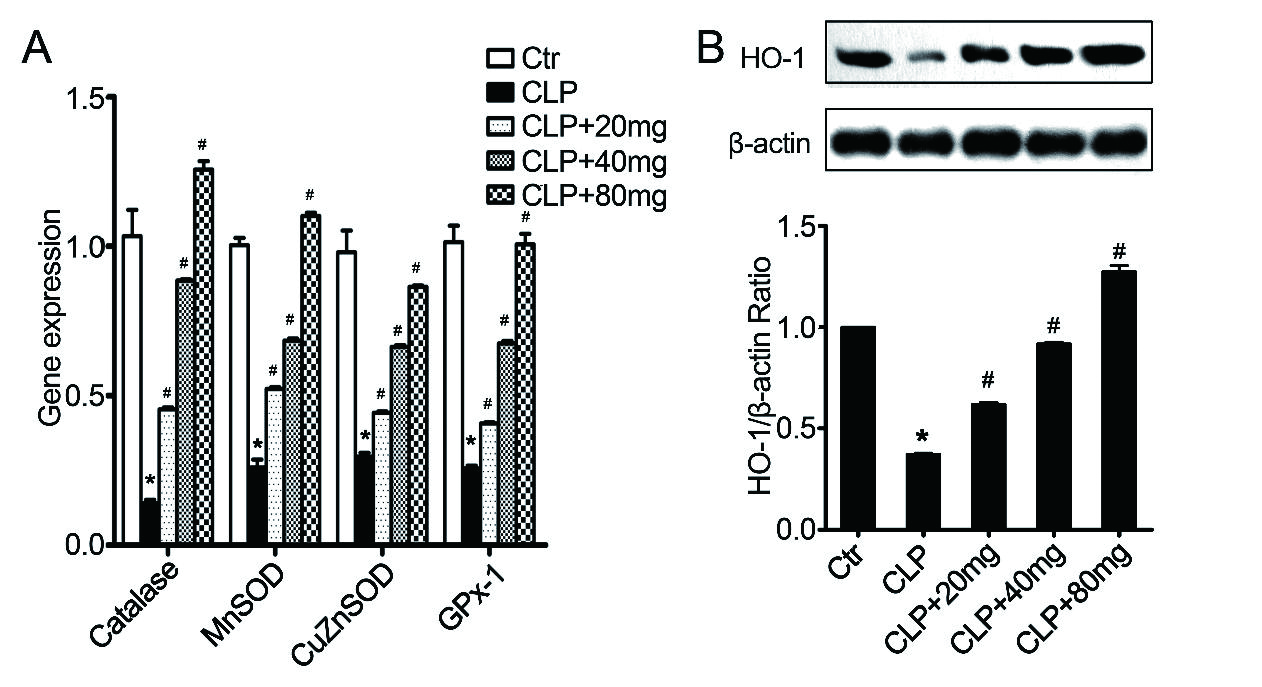 2.6 对脓毒症小鼠抗氧化酶和HO-1表达的影响