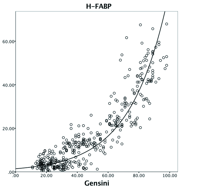 | 图 2 冠脉Gensini评分与H-FABP曲线拟合结果 |
