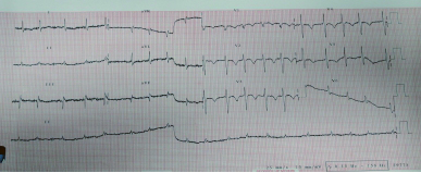 | 图 12 入院时心电图表现显示窦性心动过速、SⅠQⅢTIIII |