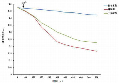 由Ca2+触发后(箭头所示,图 5),MPTP开放。与假手术组比较,对照组线粒体吸光度明显降低,提示线粒体明显肿胀。对于经过丁苯酞治疗后,线粒体明显肿胀得到改善。
